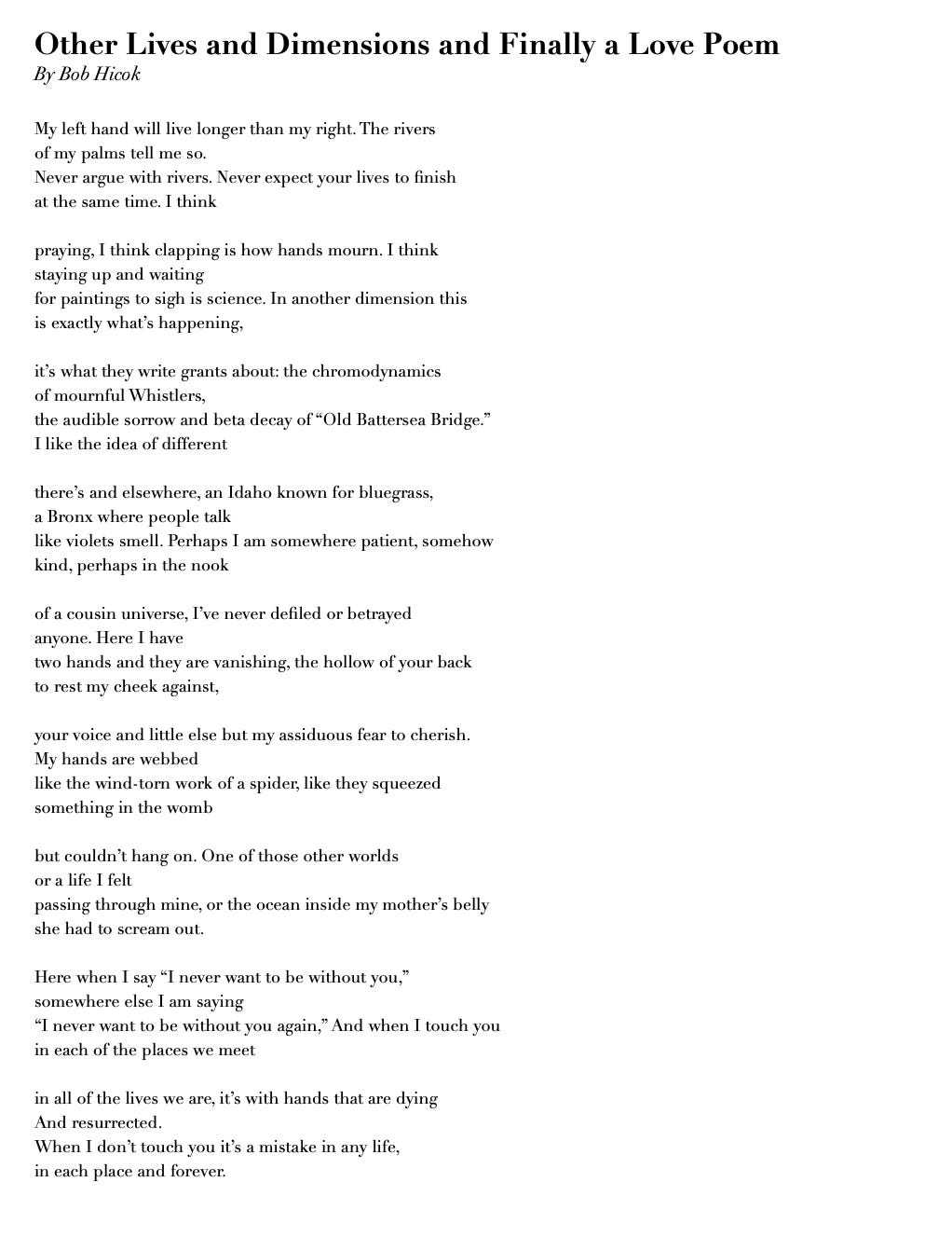 “Other Lives and Dimensions and Finally a Love Poem” by Bob Hicok
