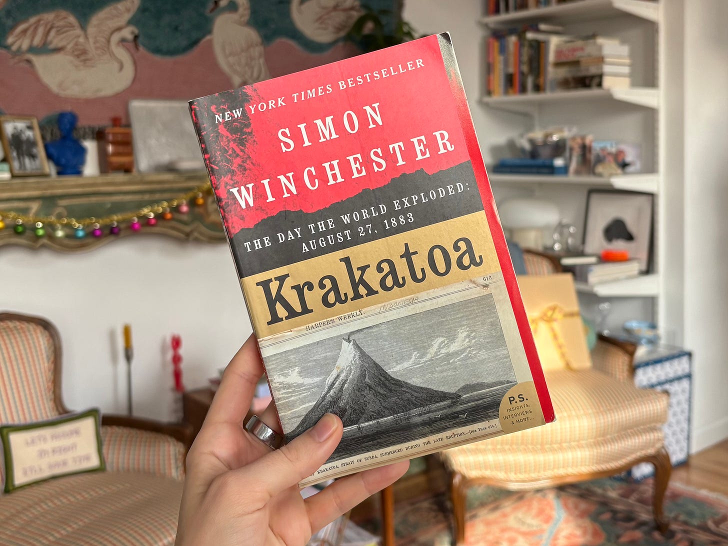 At the same time, I decided I might as well try to chip away at my shelf of languishing nonfiction by reading one of the most recently acquired (and thus least languishing) titles thereupon. Krakatoa: The Day the World Exploded by Simon Winchester was a Christmas present from my sister’s lover, John. He knows that I love volcanoes2 for their sheer destructive potential, and identified Krakatoa as a deeply destructive volcano that I should probably know about. He couldn’t have been more correct!