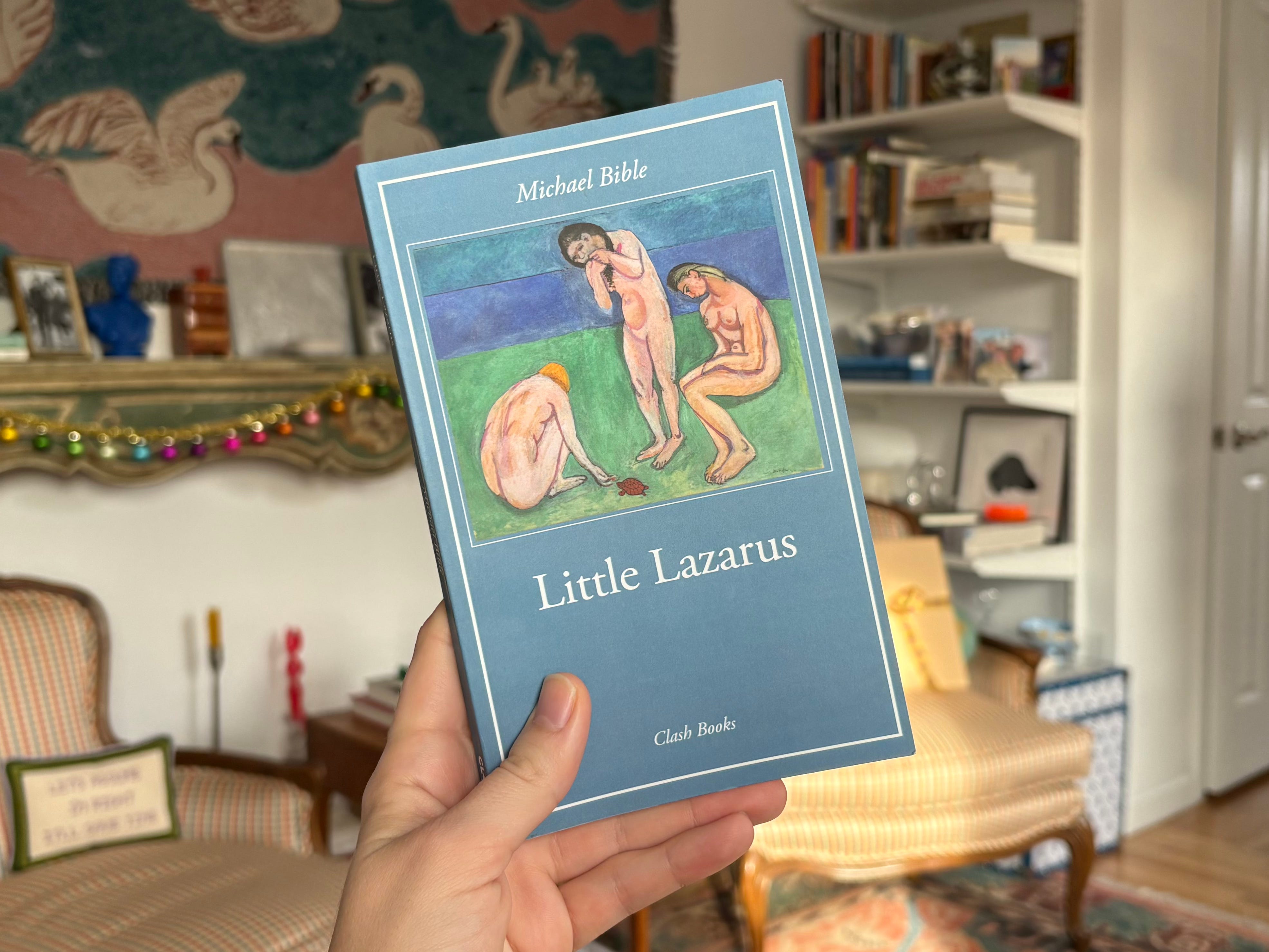 At the end of January,1 I finished Washington Square, and felt drawn to something a bit more contemporary. I thought it would be wise to also start the shortest month with a short book, so as not to nosedive from eight books in January to one book in February. I have a section of my shelf dedicated to skinny little spines, and I picked out Little Lazarus by Michael Bible. I picked it because a couple weeks ago I read a short story by Bud Smith, googled Bud Smith, found his Instagram (on browser), and saw that he was teaching a workshop with Michael Bible. I thought Little Lazarus might be good since I think Bud Smith is good, and Bud Smith obviously thinks Michael Bible is good, or at least is friends with him. I also think I bought it off the staff picks table at Three Lives, which will always be good enough for me.