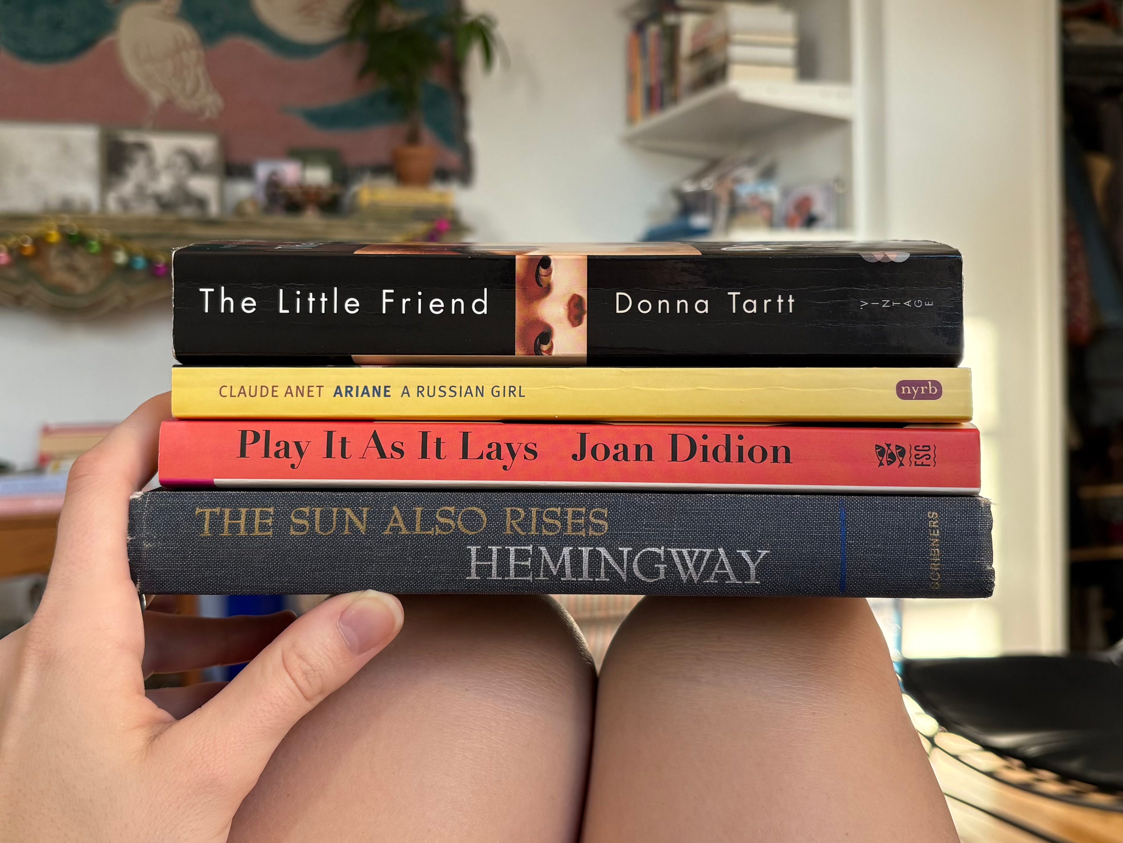 This was so fun to read, Eve !!! I love that your physical-tbr project is going well so far, and I loved the connective tissue you've included between each book, the process of deciding which one would be next. I'm looking forward to more! The Little Friend is also the only Donna Tartt novel I haven't read yet, and it's also been sitting on my shelf forever. Thinking I may take on a no-new-books project like yours after I wrap up grad school this spring (no more long syllabi of required books every semester!)