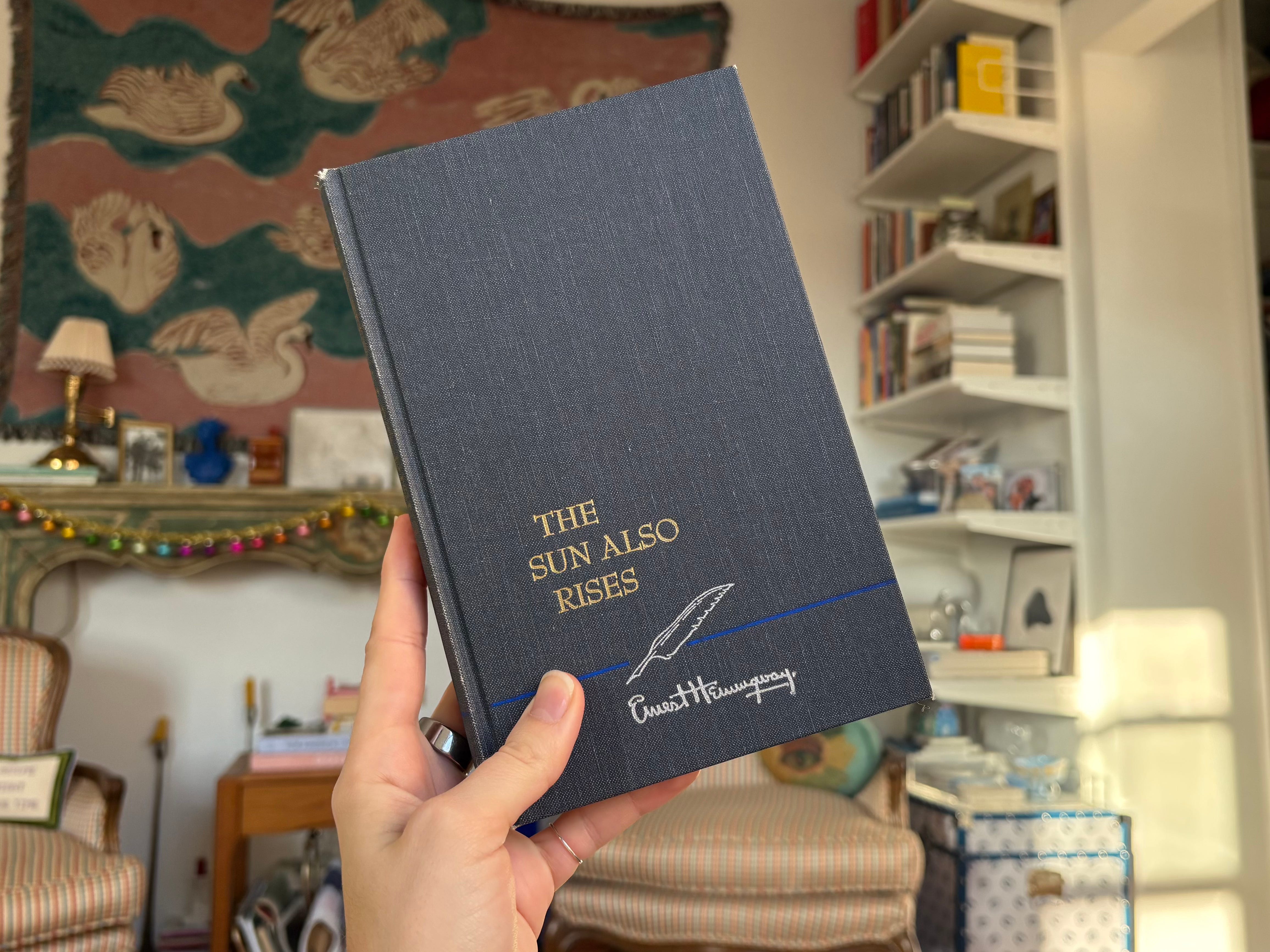 I started the month with The Sun Also Rises by Ernest Hemingway. A couple years ago, I found a pretty cloth bound Hemingway set at a thrift store. I thought, I should probably read Hemingway, so I bought them and then I didn’t read them. I picked The Sun Also Rises because of the three in the set (A Farewell to Arms, For Whom the Bell Tolls), its spine was the skinniest. It also happens to be Hemingway’s first novel, which is nice.
