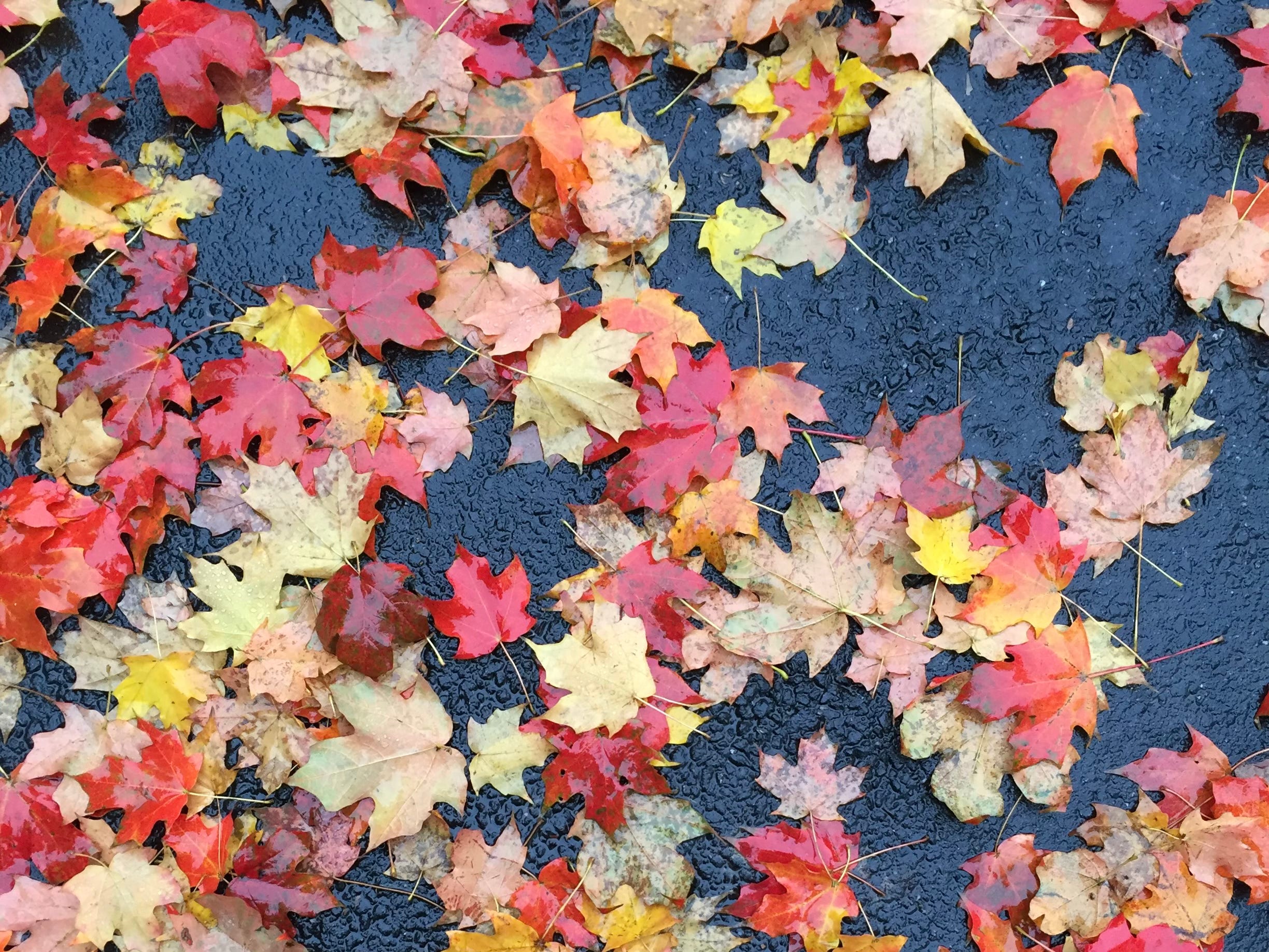 On the drive home from Virginia, the leaves are the color of peaches but are not peaches.